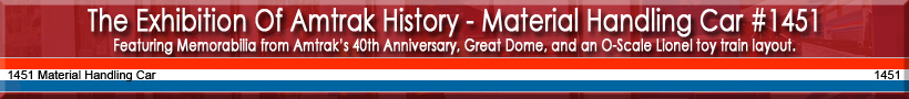 | Former Amtrak Material Handling Car (MHC-1) #1451. This car was also built in 1986 by Thrall and was retired by Amtrak in July 2003. Special Thanks to www.amtrakbythenumbers.com for historical information on this car. |