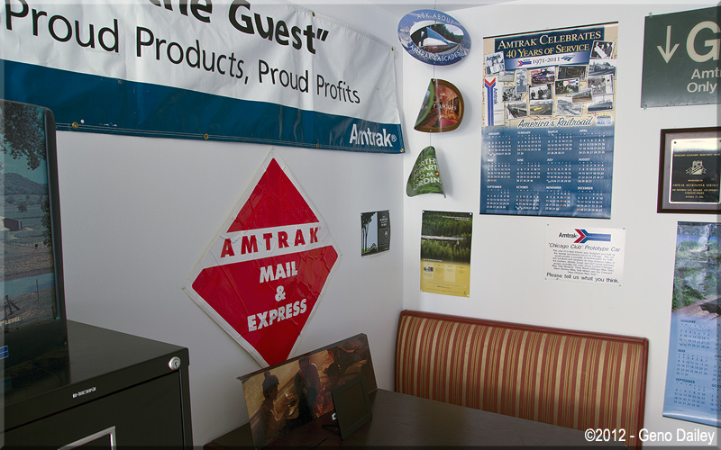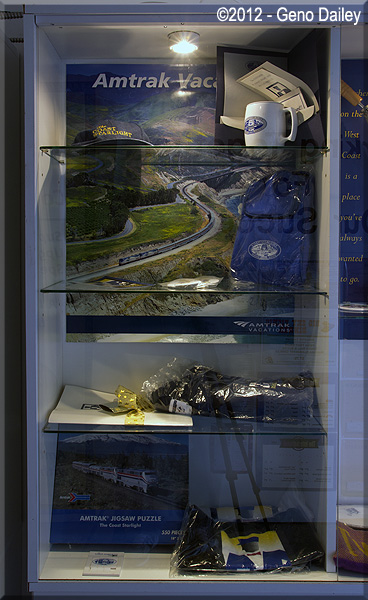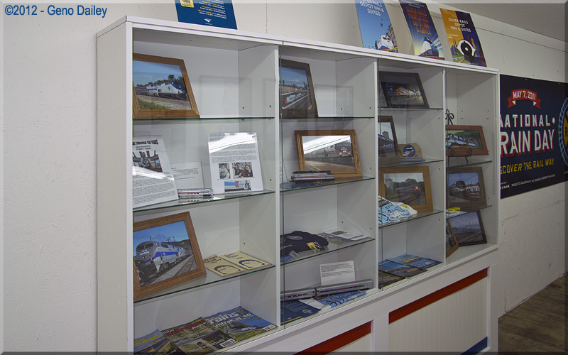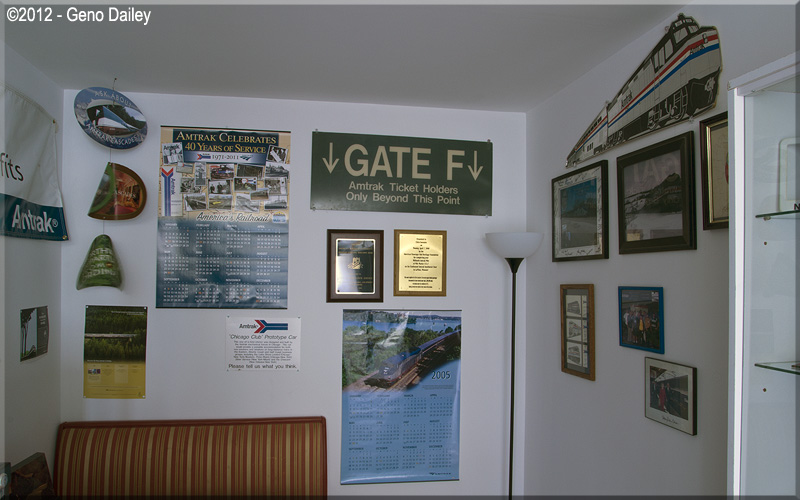 | More Amtrak calendars and other signage along with photos celebrating Chris Guenzler's millionth mile riding Amtrak! | |