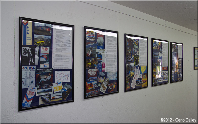 | About one half of this car contains photos/memorabilia dedicated to Amtrak's recent 40th Anniversary. | |