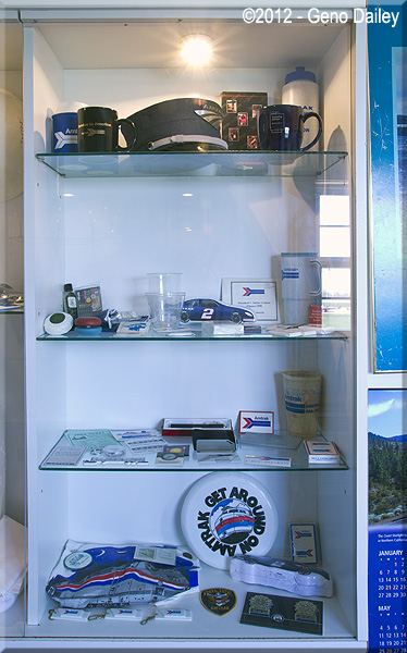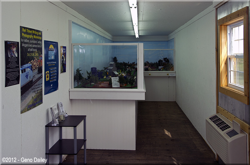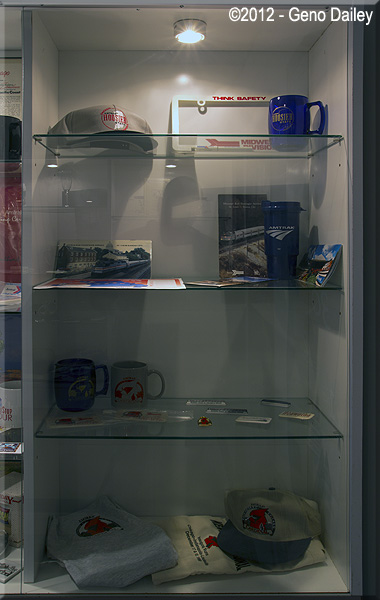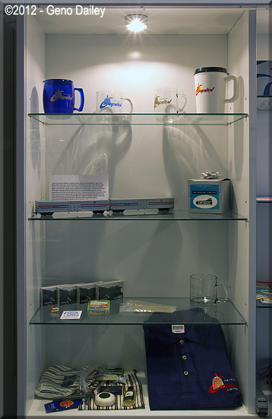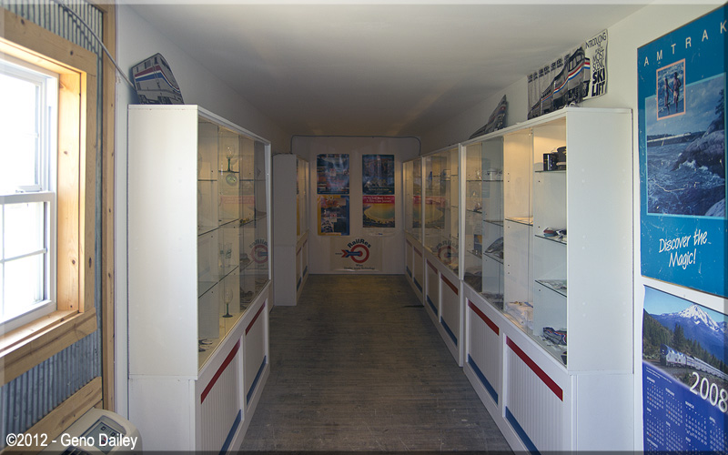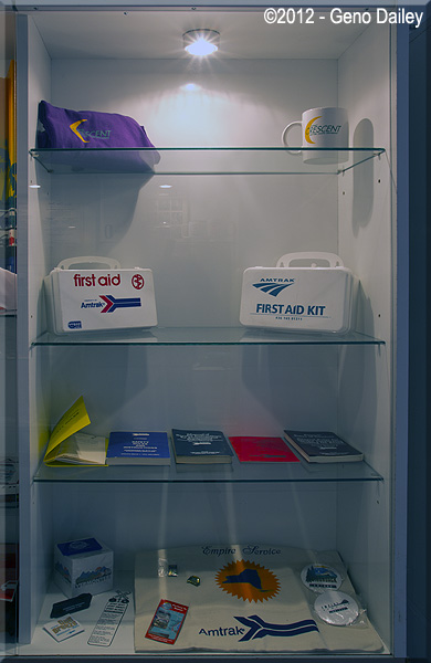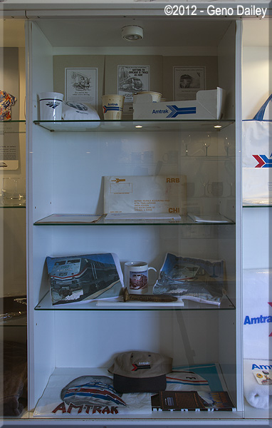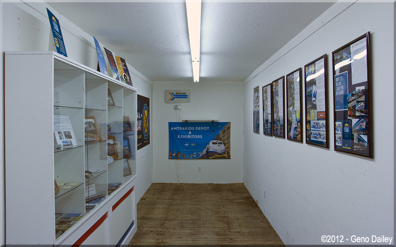 | A wide view of the other side of the car featuring all the display cases. The filing cabinets contain books/manuals about Amtrak available for reading while visiting, I hope you enjoyed this pictorial of this great museum! As of when this travelogue went online the entire museum has been rearranged, so I need to come back again to see how much has changed since October 2012! |
