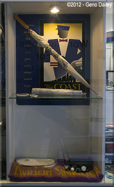 | LEFT: Amtrak's Coast Starlight banner and umbrella along with a towel and toiletry bag from the Twilight Shoreliner. RIGHT: Amtrak Vacations is available to plan a great vacation by rail! Also included is more Coast Starlight gear. |