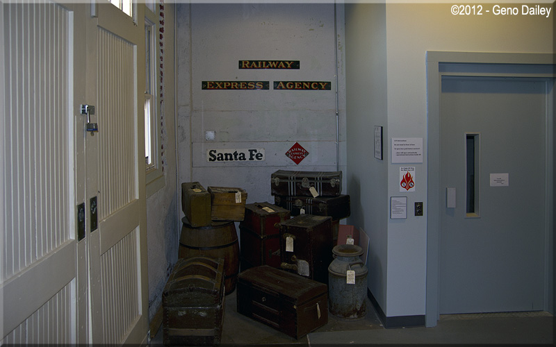 | A couple Railway Express Agency baggage carts located outside the museum. |