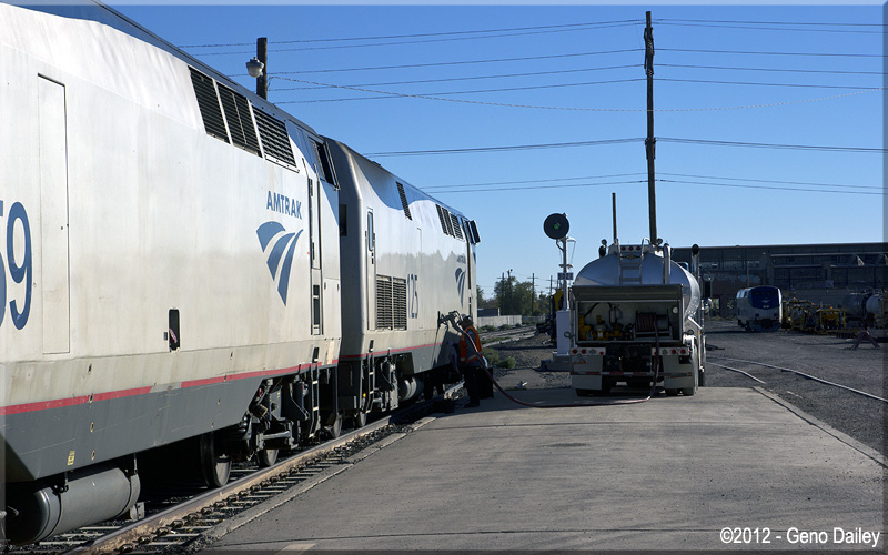 The fueling pad at 8th Street Yard with P42DC #153 waiting to be filled up. #153 will be the lead unit on the