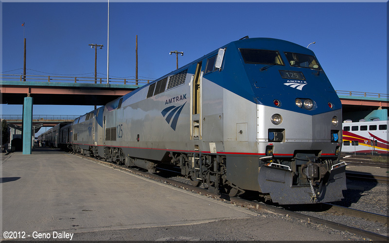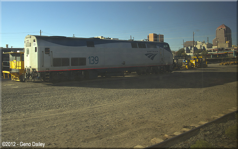 | Albuquerque is a fueling stop for the Southwest Chief. Also Amtrak tries to keep a protect unit P42DC here as seen in the above pic. |