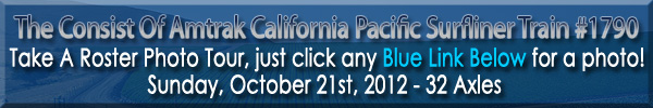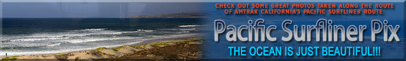 I began walking towards the station to Baggage Claim to pick up my luggage. Once I arrived there, I waited for it to be sent down a chute similar to what you see in an airport when you go to pick up your luggage. An Amtrak baggage handler was there to make sure claim checks matched up with luggage. After getting my luggage, I walked down to the other end of the platforms to an area where I would catch the "FlyAway Bus" to LAX Airport so I could go pick up my rental car. The cost of the bus fare was $7.00 and the bus was scheduled to arrive at the station at 8:00pm. It ended up getting far behind schedule and after repeated apologies for the bus' lateness by FlyAway's staff, the bus finally arrived, fully loaded from the airport. They first unloaded all passengers and luggage, then the good-sized group of passengers, myself included, boarded. The ride to the Airport was uneventful as traffic on the freeways wasn't that bad due to it being Sunday night. I got off the bus at Terminal 1, then went downstairs to board the Enterprise shuttle bus to their facility which is off airport property. Once I arrived there, I used a kiosk to check in and was given a printout of my reservation. I would get a 2012 Ford Fusion SEL for a rental car. This is the outgoing model of this car as Ford has redesigned it for 2013. After signing the paperwork, I set up my Garmin Nuvi 50LM GPS in the car and would head for Oxnard which will be my "home base" for the next 4 nights! The drive there was decent, having no major issues with traffic. I arrived at the Courtyard By Marriott hotel there which is by far, my favorite hotel chain. They really cater mostly to business travelers but regardless offer nice, clean, modern rooms and the service is excellent. Once I got to the hotel, I realized how tired I really was so I grabbed a sandwich and a bag of chips from "The Market" at the front desk of the hotel and eventually called it a day! Although my Amtrak riding for this trip is now complete, this trip is by no means over yet! I came to Southern California to railfan along the route Amtrak uses mostly north of Los Angeles and trust me, you won't want to miss that! Before we get to that though, check out some great photos taken along the route of the Pacific Surfliner from San Luis Obispo towards Los Angeles by clicking the link below... |