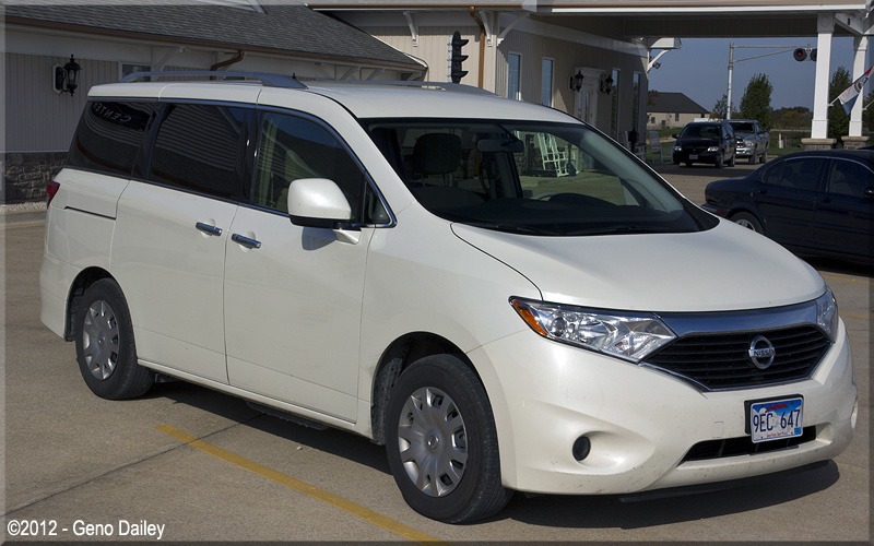 The 2012 Nissan Quest minivan which was my ride while in La Plata, MO. This was not my first choice for a vehicle since I was travelling