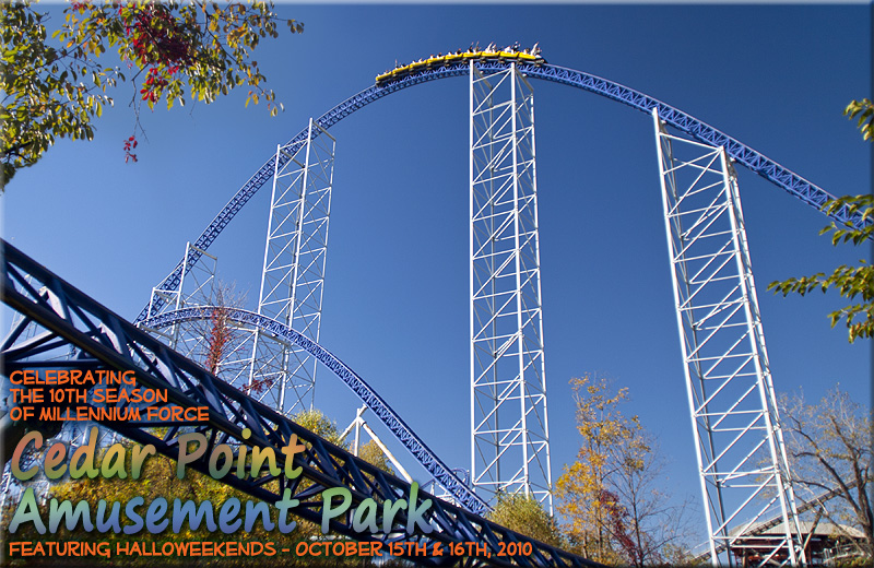 After a quick ride to Enterprise Rent-A-Car, they had a Chevy HHR reserved for me, to which I asked if they had anything else (I'm sorry, but I really don't like the way that car looks!) and they had a Malibu available if I wanted to upgrade. I paid the "upgrade fee" and took the Malibu. This was a 2009 Chevy Malibu that had over 34,000 miles on it and it also had Maryland plates on it for whatever reason. After picking up the car, I drove back to the hotel and decided I was gonna make the nearly 60 mile drive back to the west side of Cleveland to go to White Castle! Now you're probably thinking "Geno, are you nuts???" Well, we don't have this chain in Western New York and I love those little hamburgers, and I'm on vacation! So I set up the GPS in the rental car to get me back there and made the drive! After a good lunch, I drove back to Sandusky. I headed to a local Super Wal-Mart to pick up some "consumables" for the hotel (Diet Pepsi, Bottled Water, Chex Mix, and some kind of dried fruit). By now, it was after 5pm, time to make the drive to the park! I arrived at the park right around 6pm. Cedar Point once again has earned its title as "Best Amusement Park In The World" and this year was no exception. The HalloWeekends events are one of the biggest reasons to make the trip here in the Fall. Among the new attractions for this year was Shoot The Rapids, which is a water flume ride located in Frontiertown. I had the honor of being invited to the Opening Day ceremonies back in May and thus this is actually my second time visiting the park this year (I drove here back in May for that event). Shoot The Rapids was not yet opened as it was still under construction at that time. This time around, it was also closed as it is a water ride and it's not 80 degrees out anymore! Bummer! So needless to say, I didn't ride it, but there's always next year! For HalloWeekends, new this year is a haunted house attraction called "Dr. D. Mented's Asylum For The Criminally Insane". This is by far, one of the absolute scariest haunted houses I've ever walked through, and in all honesty, if there wasn't an hour long wait to get into it, I would have walked through it twice as it was so awesome! Other HalloWeekends favorites were also back including "Club Blood", "CarnEVIL", the "Fright Zone" and "Happy Jack's Toy Factory". I had dinner in the park at Panda Express (great Chinese food)! I would eventually do some night photography at the park before calling it a day. I drove back to the hotel, only to be in an insane amount of pain from all the walking I did, Thank God for Advil! And so ends a decent first day at the park. There's lots to see from CP in 2010, check out the links below!!!