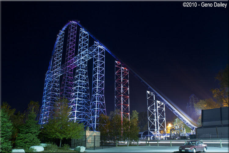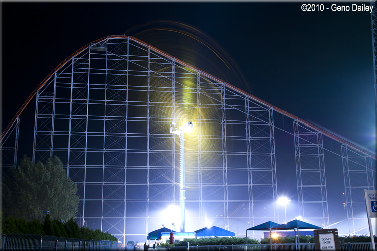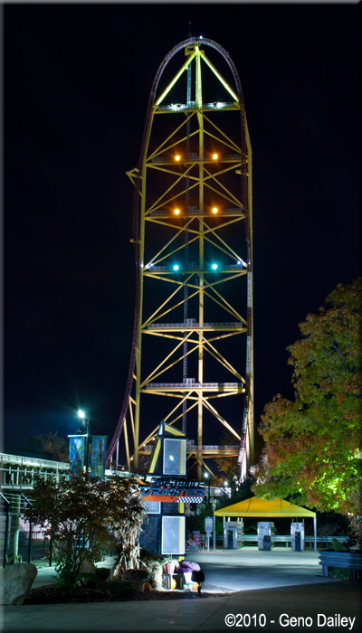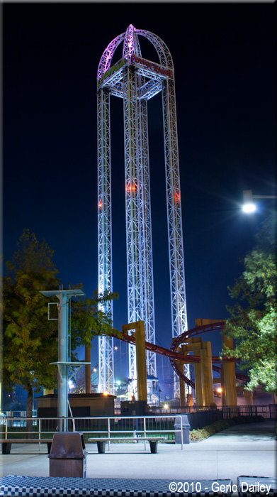 | LEFT: The 1998-built Power Tower in lights! RIGHT: The 2003-built Top Thrill Dragster ready for another race! |