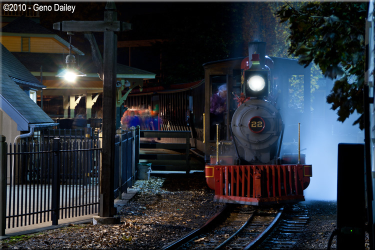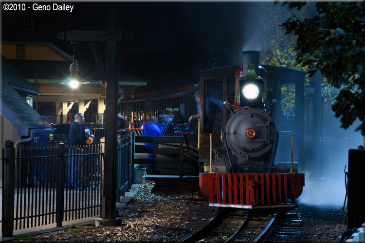 | The Cedar Point & Lake Erie Railroad's #44 Steamer "Judy K." taking a break in Frontiertown Station. |