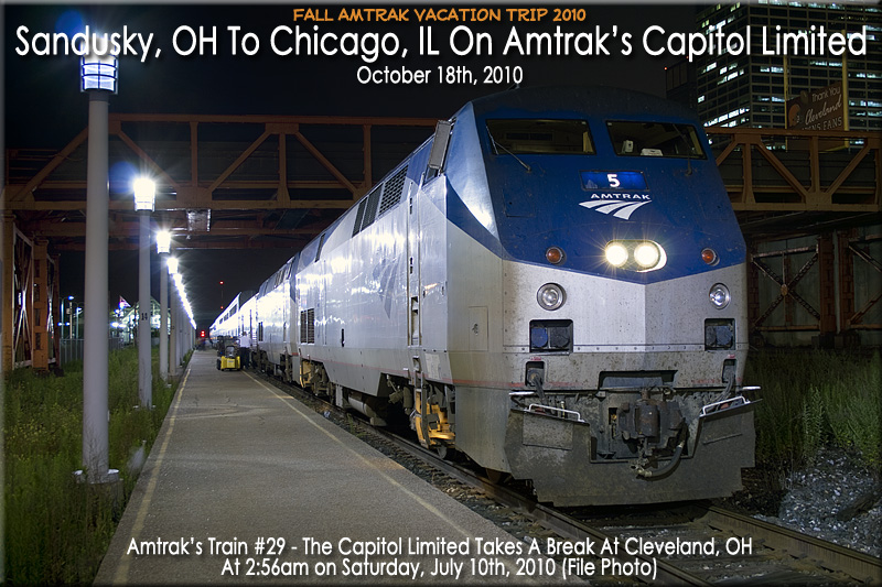 Today's train had P40DC #830 as the second unit. When Amtrak got out of the Mail & Express business several years ago, they found themselves with some excess power. The end result was that most of the P40's would eventually end up in storage. Several were sold off or leased and others would just sit. 15 of these units would end up being slated for refurbishing using stimulus money and several have now come online since then and can be seen practically anywhere in the Amtrak system. This is the first time I've had one of these units on a train since 2004! I was seated in the middle of the three coaches in Superliner I Coach #34010. There wasn't a heck of a lot of people riding today as this is not the peak season for this train. I had nobody sitting next to me so I was able to spread out a bit. I talked briefly with the crew and found out that the west end of the platform in Toledo is not accessible for photography so I wouldn't take a night photo at that location. Fortunately I did get a nice night photo of this train back in July in Cleveland, which is the photo I used at the top of this page. The last time I had visited Cleveland to do this was in 2005 so I knew I wanted to get back there and get an updated photo. I actually made a 4 hour drive from Buffalo to Cleveland, and photographed that train there at that time having gotten prior permission to do so. Now I know what you're probably thinking, "he drove 4 hours to get a picture?" Well I would photograph all 4 trains serving Cleveland that night! Yep, you're right, I'm crazy! We arrived into Toledo at 4:52am. This is a crew change point for this train. Due to the dwell time, we could get off the train to get some air or smoke for those wishing to do so. The Assistant Conductor on today's train was someone I recognized as she has worked on the Lake Shore Limited to Buffalo before! I headed inside the station to grab a Diet Pepsi and a candy bar then would hang out on the platform by my coach. We departed Toledo on time at 5:22am.