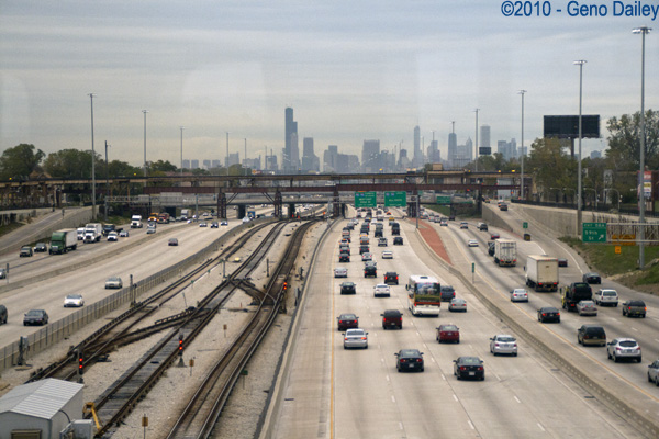 | The Dan Ryan Expressway (I-90 & I-94) looking north, now you can see the Willis Tower! |
