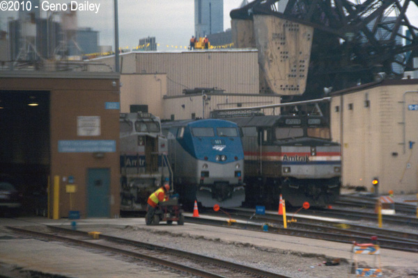 Now entering Amtrak's Chicago Maintenance Facilities. Here we have a P32-8BWH, a P42DC