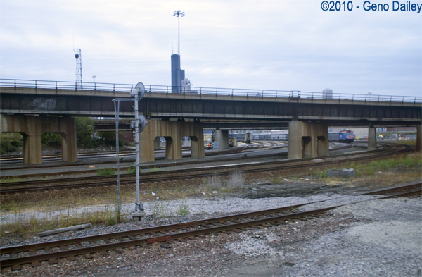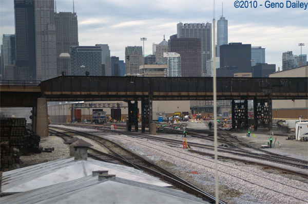 | Another view of the Chicago facilities as we made our turn onto the BNSF main for our backup move. |