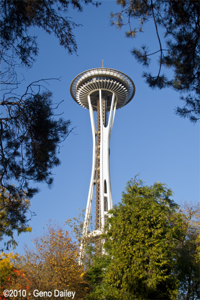 LEFT: A view of the Space Needle from the grounds of the Seattle Center.