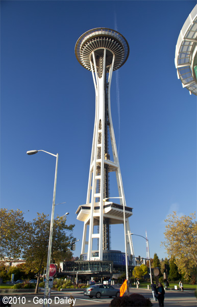 LEFT: The Space Needle as seen from the corner of Clay St. and 3rd Ave.