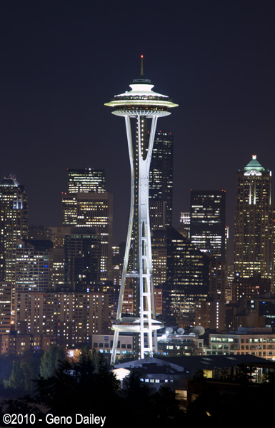 RIGHT: A closer night view of the big tower from Kerry Park! |