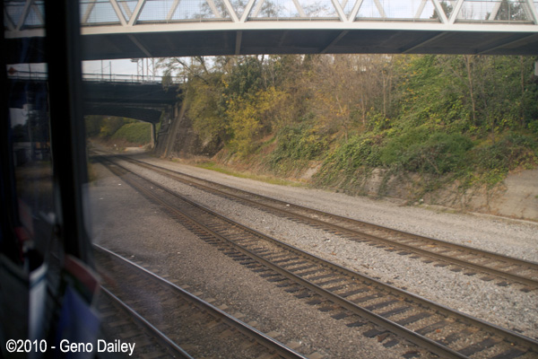 | Goodbye BNSF, hello Uncle Pete! We're now merging onto the Union Pacific Brooklyn Sub south of Portland. |