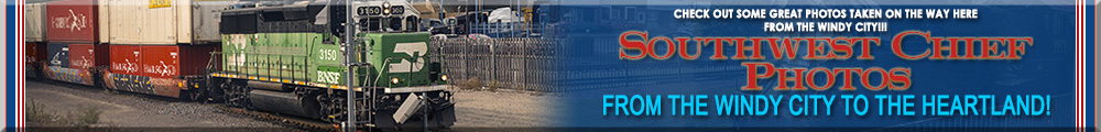 | After getting back to the Metropolitan Lounge and retrieving my bags and chatting with the aforementioned NARP members, the boarding call was made for Train #3 - The Southwest Chief at around 2:20pm. Coach passengers right now, begin their boarding from inside the Great Hall at Union Station due to renovations being done near the regular gates, whereas Sleeping Car passengers still board from the exit out of the lounge. I took down car numbers as I walked the platform to get to my Sleeping Car which was Superliner I Sleeping Car #32042, the "0330" car and I was assigned to Roomette #2. I put my big bag on the lower level of the car and my smaller one in the room along with my camera bag, then walked the rest of the train to get the rest of the consist and a quick picture. I noticed we would have a Heritage Baggage in the consist which is becoming a rarity since the new Viewliner II Baggage Cars have come online. The consist for today's train is shown below: |