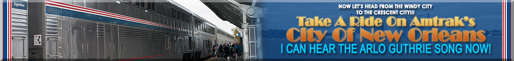 City of New Orleans on the train whose name is shared by a famous song written by Steve Goodman and performed by Arlo Guthrie!