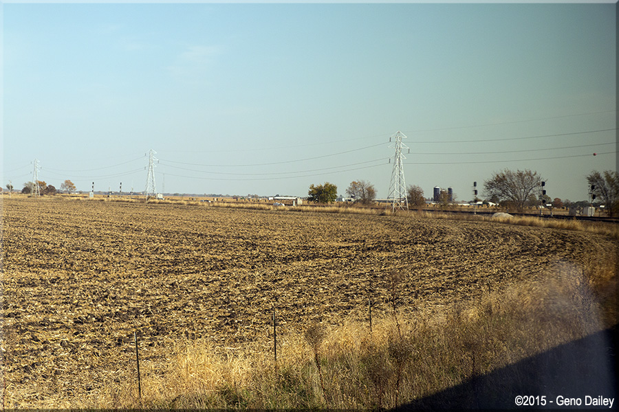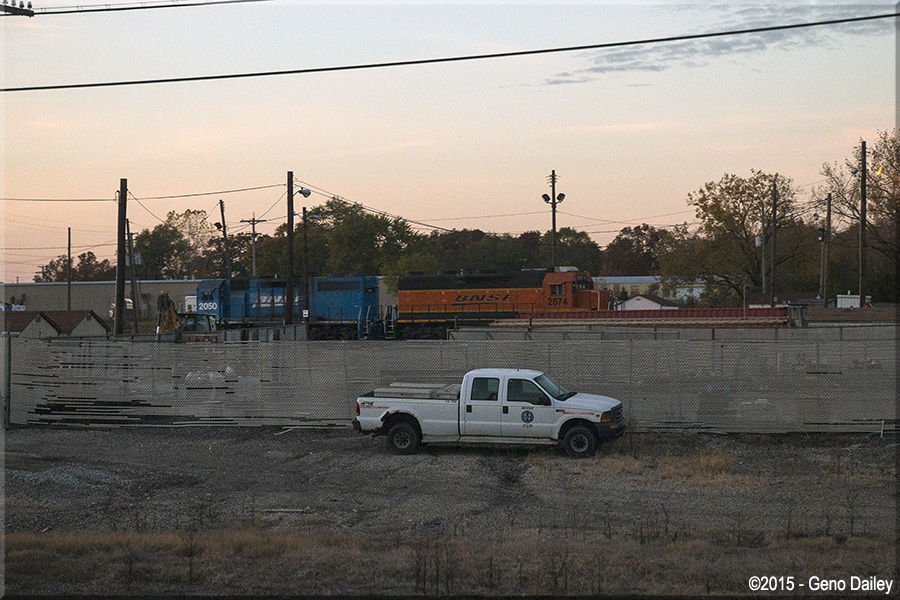 Passing by the entrance to BNSF Eola Yard east of what used to be a road crossing at McClure Road (not shown). The BNSF units hiding behind
