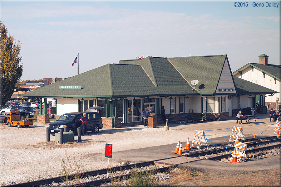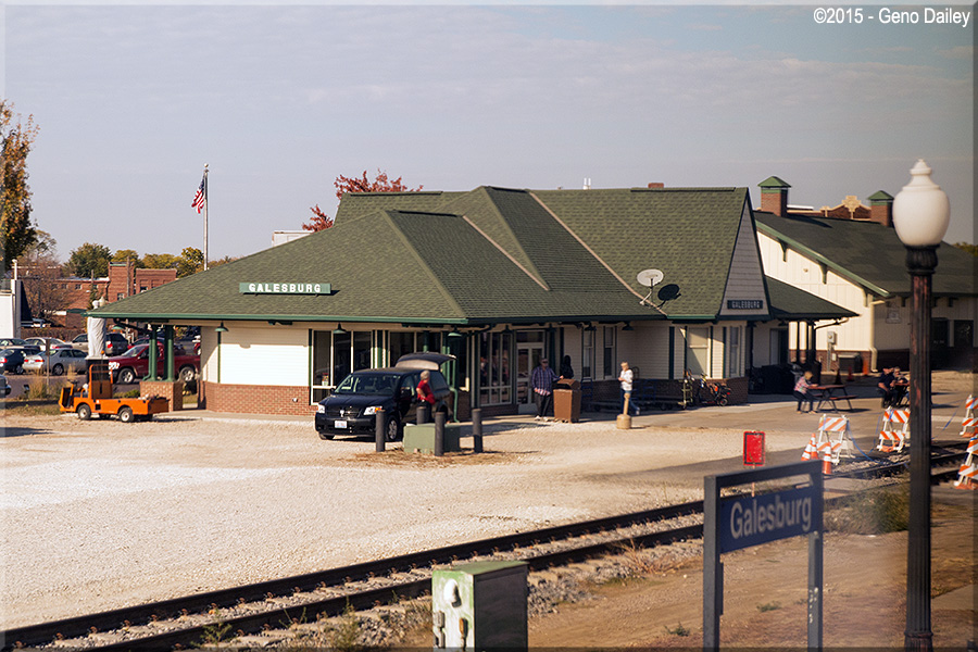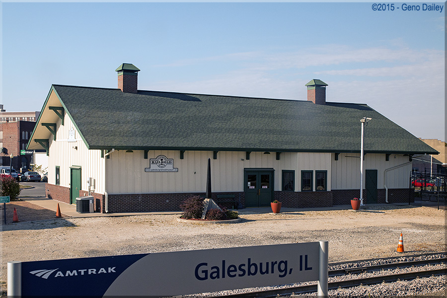 Now arriving at our next station stop of Galesburg, IL. Amtrak has been stopping at this station in Galesburg on the old BN main since being