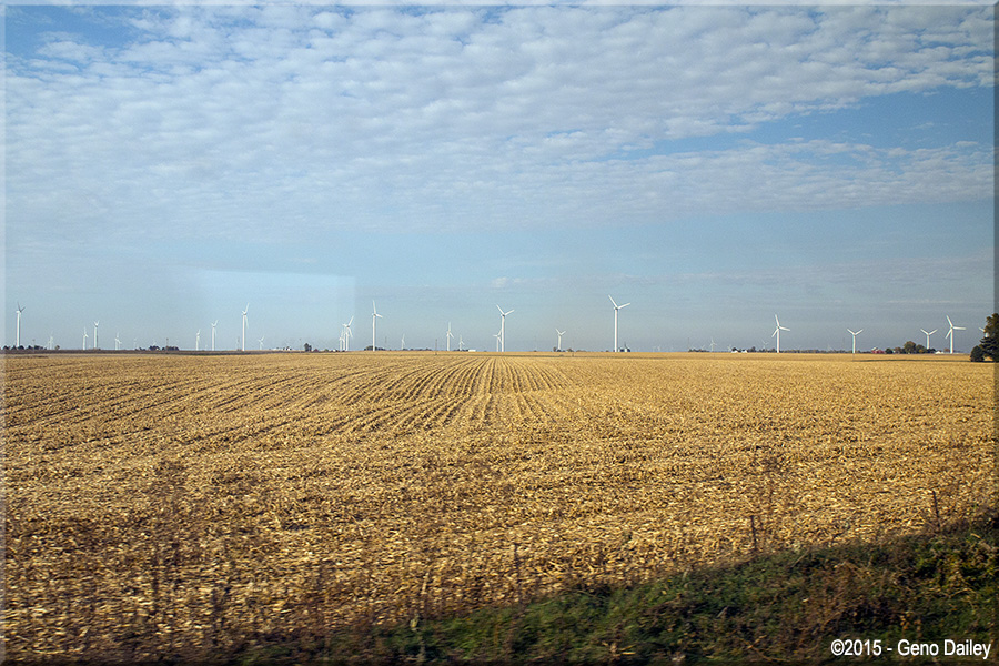 A big "wind farm" full of windmills generating electricity at Altona, IL. |
