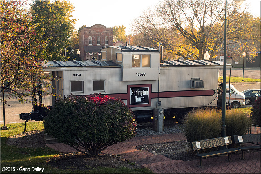 At our next stop of Princeton, IL sits this 1964-built Chicago, Burlington & Quincy Wide-Vision Class NE-13 Caboose #13593. |
