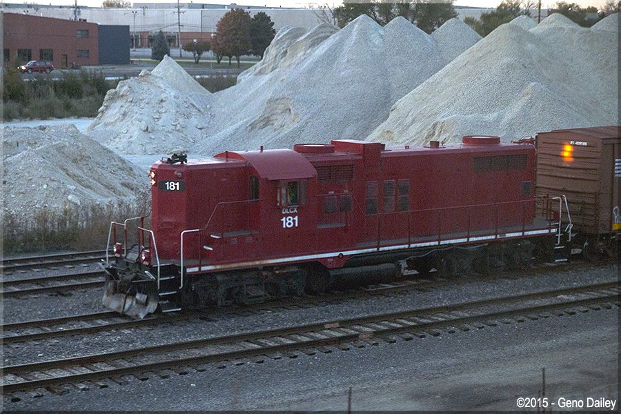 DLCX EMD GP-18 #181 works at Ozinga Concrete & Fueling for the Burlington Junction Railway at Montgomery. |