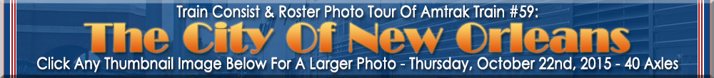 I took my bags in the station but not before taking some quick photos of the train. I would then get a taxi to my hotel for the evening, the Courtyard By Marriott New Orleans/Iberville which was located on Iberville Street in the French Quarter, just a block from Bourbon Street. Now before you even think about it, NO, I didn't go to Bourbon Street as I didn't have time and I hardly ever drink anyway! This hotel had a bellhop who brought my bags up to my room after I checked in, something I've never seen at a Courtyard By Marriott and I've stayed at more of these specific brand hotels over the years than I can count! After my bags were delivered, I walked to a nearby McDonald's for a very quick dinner, then to a nearby Walgreens to pick up some more pop and bottled water for the next leg of the trip. I then walked back to the hotel to start my laundry and at that point, had my blunder for the day! I managed to somehow leave my toiletry bag on the train! (cue the sad trombone). This ended up being a bright spot for Amtrak, and me losing another $30.00 on cab fares! I called Amtrak and they pointed me to the lost and found department at the New Orleans station and low and behold, they found my bag, so all I had to do was go pick it up! I got a cab back to the station, (it was only .4 miles from the hotel and the cabs charged a flat fare for it), picked up the bag and taxied back to the hotel and finished the laundry and repacked some of the luggage so as to fit 6 bottles of water and 9 small cans of pop inside! I later tried to continue writing this travelogue after backing up photos but never got around to it as I realized just how tired I really was and would end up calling it a day! Before we head outta the Crescent City for my next destination, the City of Angels, aka, Los Angeles, check out some great photos from this trip by clicking the link below... |