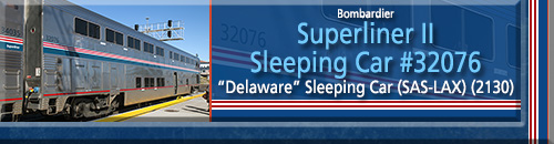 Upon arrival in San Antonio, we were met with more rain, but by now, it was more the tail end of it! I decided to take a shower at this point as I wanted to try to do a good night photo of the train here if the weather would clear out so I figured I'd get that out of the way first. The water coming out of the shower was extremely HOT (at least it wasn't cold)! I did let the attendant know and decided to just use the shower in the other sleeping car. Train #21 - The Texas Eagle from Chicago was delayed getting into San Antonio due to a freight derailment in the Dallas area, having not arrived in San Antonio until 1:31am, 3 hours and 36 minutes late. The private car that had been on the rear end of our train since New Orleans was cut off at San Antonio (its destination) and now it would appear that there would be a rather lengthy process necessary to break up the Texas Eagle so as to pull out the Sleeping Car and Coach that would be added to our train. I didn't see any of this as I went to bed around 2:00am as I was now very tired but despite the weather, this trip so far has actually been excellent. The onboard service from the crews has been top notch! Delays in getting the two cars from the Texas Eagle added to this train caused us to depart San Antonio late. We departed there at 4:06am, running 1 hour and 21 minutes late. |