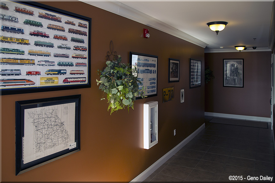 Located in the hall leading you to the pool are several railroad-inspired drawings of different equipment on the wall. |