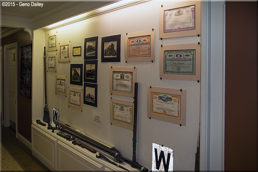 | Located mostly along the main hall where the hotel's 26 rooms are located are several museum pieces of different railroad equipment, uniforms, rule books, stock certificates, and photos. It's truly a museum in a hotel! Included here is a sample of what you'll find when you stay here. My hope is that these photos, like those before them, will give you another reason to want to stay here! Enjoy... |