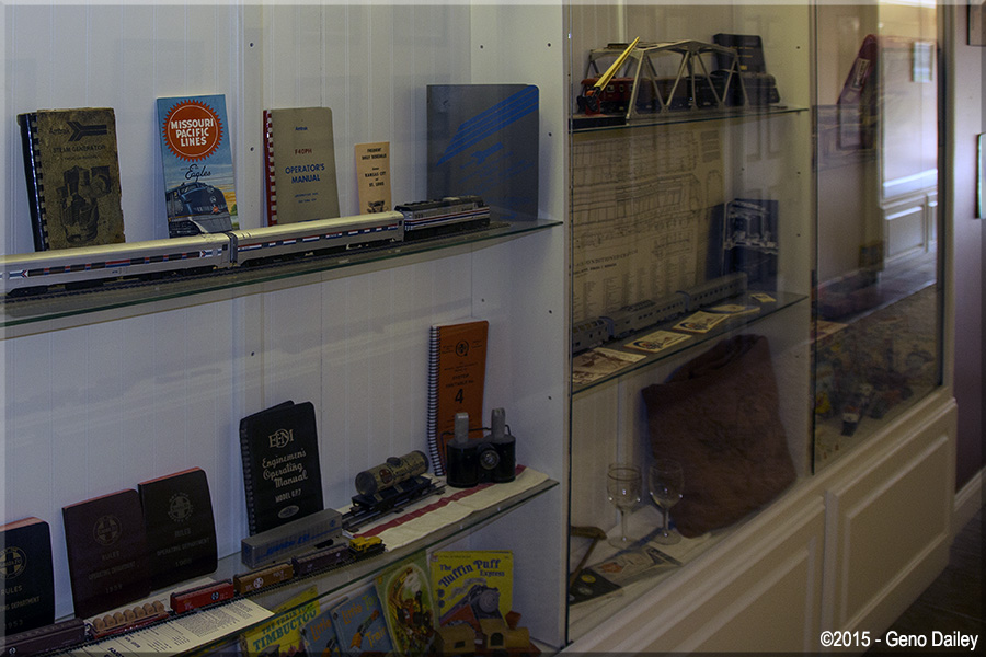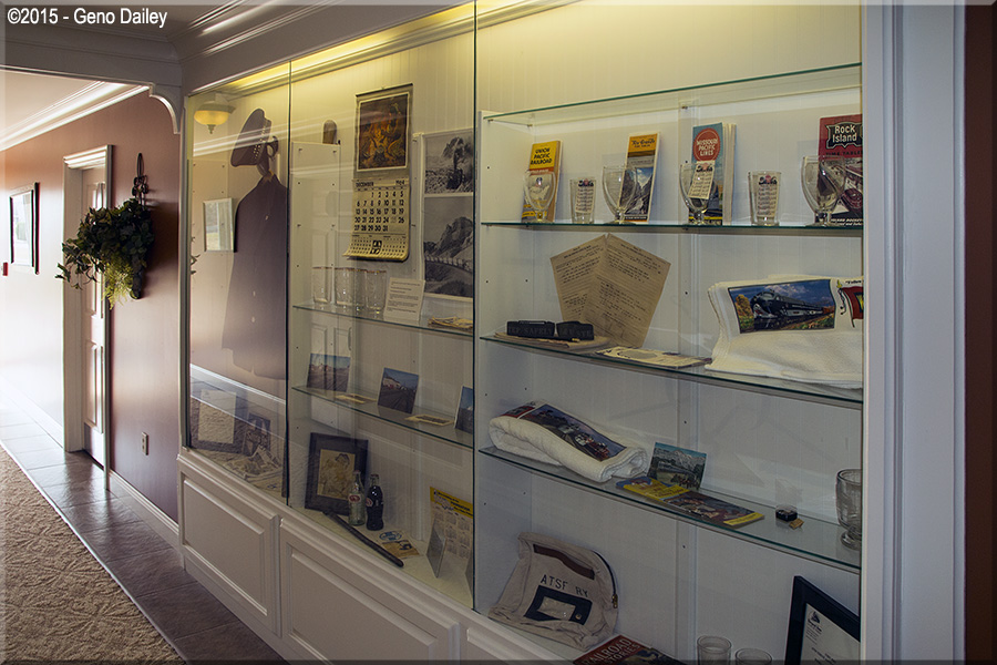 Some railroad memorabilia, mostly from the Santa Fe, whose railway runs through La Plata (now a part of BNSF Railway). |