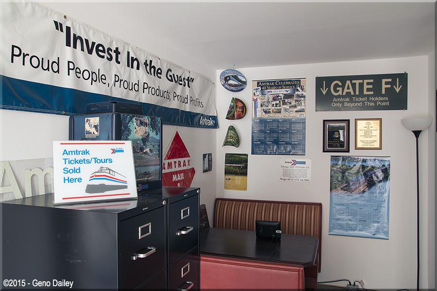 The filing cabinets feature lots of Amtrak books and historical artifacts. Remember when Amtrak passengers were referred to as "guests"? Also included