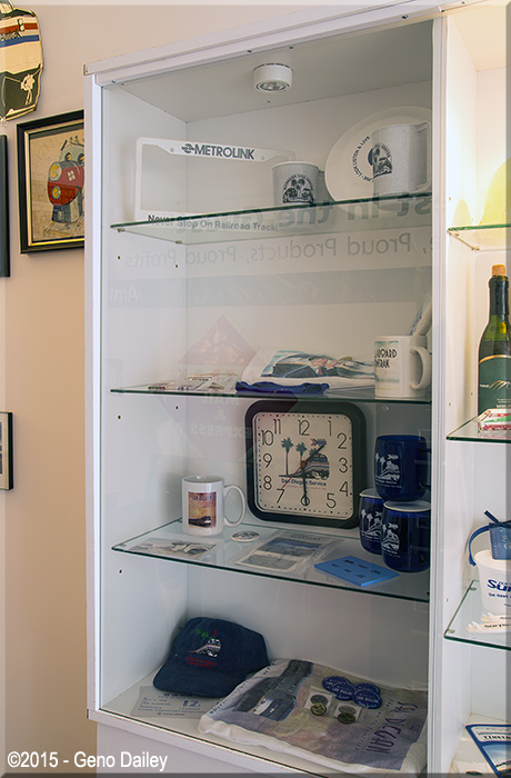 LEFT: A Metrolink license plate frame (Los Angeles' commuter railroad), along with a clock and coffee mugs from Amtrak West (one of Amtrak's Strategic