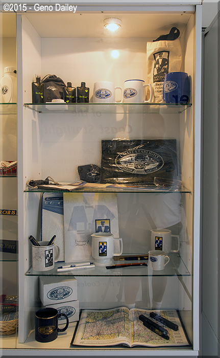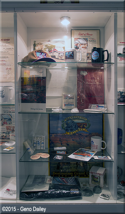 a Dining Car menu labeled "The Southwest Limited" which was the name for this train at one time. Also included is merchandise branded as