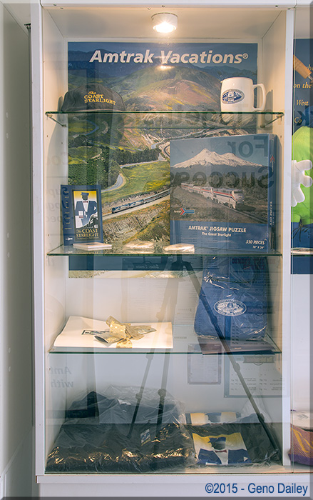 service that runs between San Luis Obispo and San Diego via Los Angeles. RIGHT: Memorabilia from Amtrak's Cascades service in the Pacific Northwest