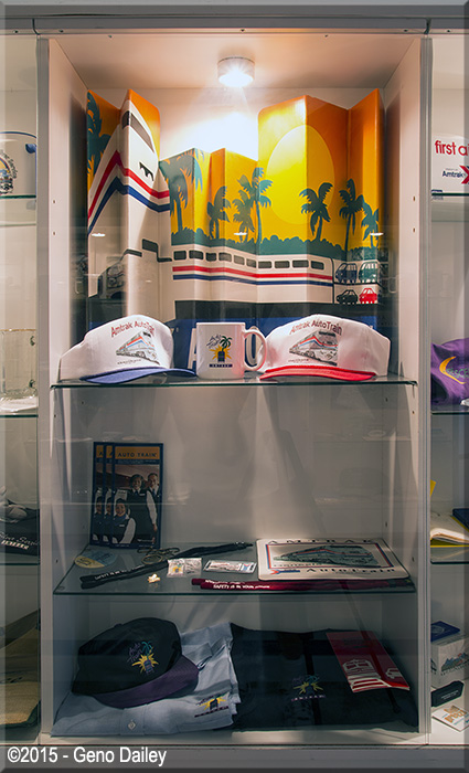 New York. RIGHT: Amtrak's Lorton, VA-Sanford, FL Auto Train where you bring your car along for the ride! Shown here are hats, a mug, mouse pad,