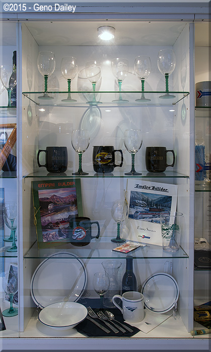Two cases dedicated to one of Amtrak's most scenic routes, the Chicago-Seattle/Portland Empire Builder! Here we have lots of glassware, bottles