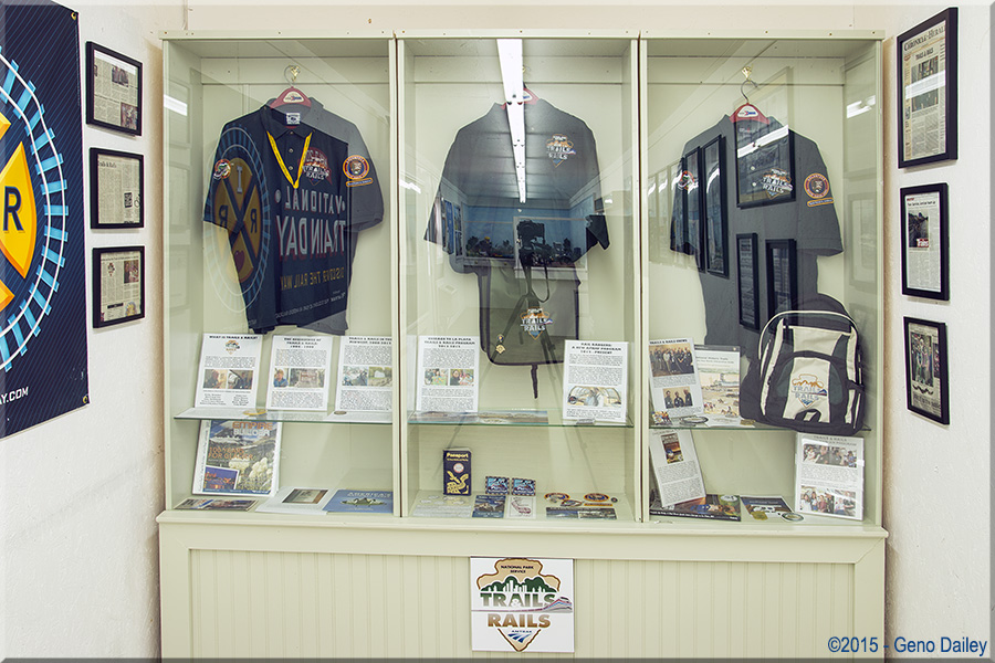 Uniforms from the Amtrak Trails & Rails program that it runs with the National Park Service. No, there are no photo tricks here, my camera is reflected