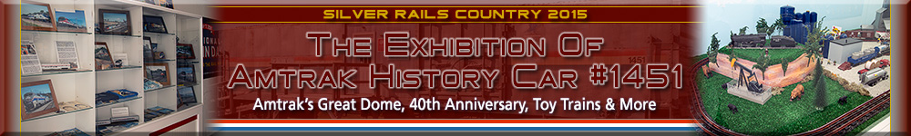 | The second of the two Material Handling Cars (I'll refer to this one as the "red car" since it has a red label outside the door) that make up the Exhibition Of Amtrak History consist of displays covering Amtrak's 40th Anniversary, along with its Great Dome car and more. Also occupying about half of the car is an excellent O Scale Lionel toy train layout that was built by a company called "Trains Across America". So this will be the second of two train layouts you'll easily be able to see here in Silver Rails Country (the first being the NEMO Model Railroad Club that you saw earlier). Included here are photos of what was on display in this car during my visit. Enjoy... |