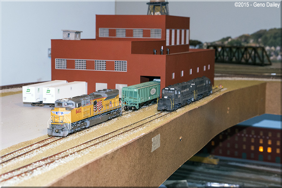 Some Union Pacific power along with some Norfolk & Western power, model railroads let you run virtually whatever you want on your railroad! |