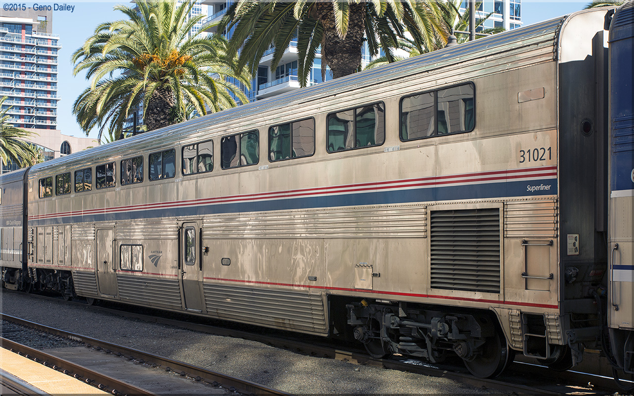 Built in 1980 as a 62 seat coach with a baggage room occupying part of the lower level of the car. Historical information about this car provided by www.amtrakbythenumbers.com. |