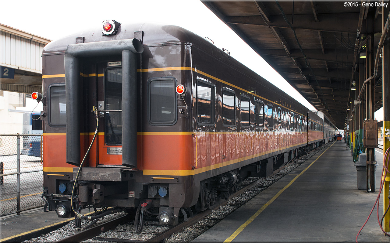 Built by Pullman-Standard in 1950 as a Sleeper-Buffet-Lounge for the Chesapeake & Ohio Railroad and numbered 2500. Rebuilt as a Diner-Sleeper in 1961 and renumbered 1923 by the C&O. Conveyed to Amtrak in 1971 and numbered 8200 and operated as a 32 seat diner with 3 double bedrooms. Retired by Amtrak in 1978 and sold in 1981. The car would end up in private ownership, having had multiple owners and would also change names to "Cascade Ridge", "Greenbrier Club", and "Goombay Sunrise" before eventually being purchased by Iowa Pacific Holdings for its "Pullman Rail Journeys" service that operates on the end of Amtrak's City Of New Orleans train. Under IPH ownership, the car was repainted into its Illinois Central-inspired paint scheme, named "Adirondack Club" and numbered 3312. The car also has an Amtrak Private Car #800224. Historical information about this car provided by www.amtrakbythenumbers.com, Trainorders.com, and rypn.org. |