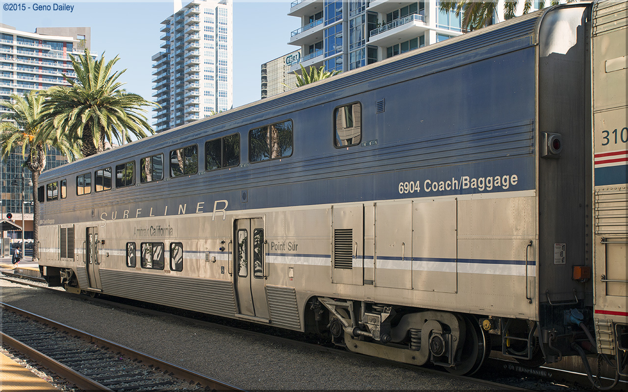 Built in October 2000 as a cab/coach/baggage car operating on Pacific Surfliner trains between Los Angeles & San Diego along with Surfliner trains operating from Los Angeles north to as far as San Luis Obispo. These cars when first built didn't have names but would begin to have names starting in 2008 as they were cycled through Beech Grove for maintenance with this car later being named "Point Sur". Historical information about this car provided by www.amtrakbythenumbers.com. |