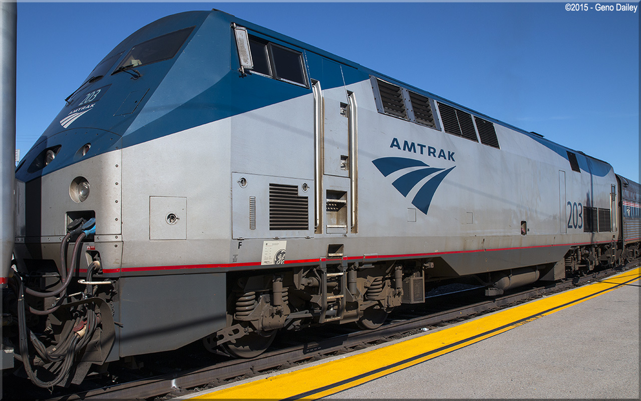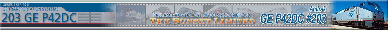 Built by General Electric Transportation Systems in October 2001 and numbered 203. This series of locomotives, also known as the Genesis Series II locomotives, were an upgraded version of the P40DC. Historical information about this car provided by www.amtrakbythenumbers.com. |