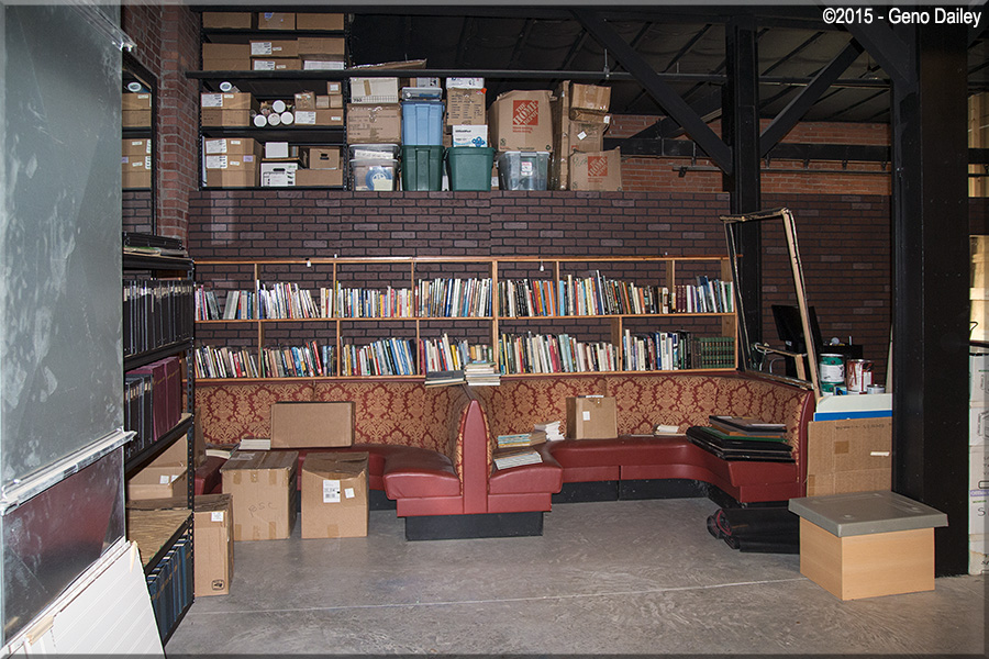 The Silver Rails Memorial Library consists of hundreds of railroad-related books and manuals. The booth tables will remain here as they