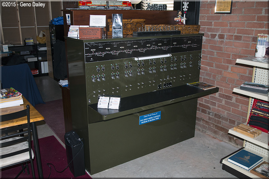 A dispatcher's board donated by the San Diego Model Railroad Museum in Balboa Park. |