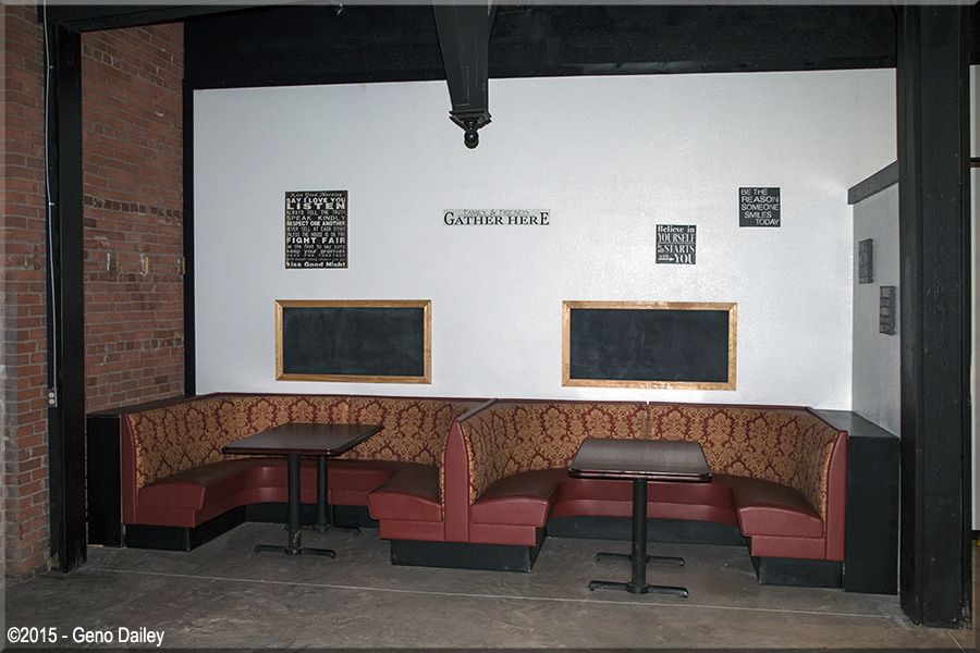 Booth-style seating is also available and provides a place to sit and relax while attending an event here. |