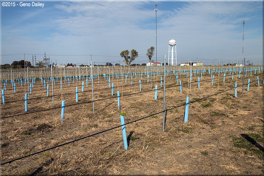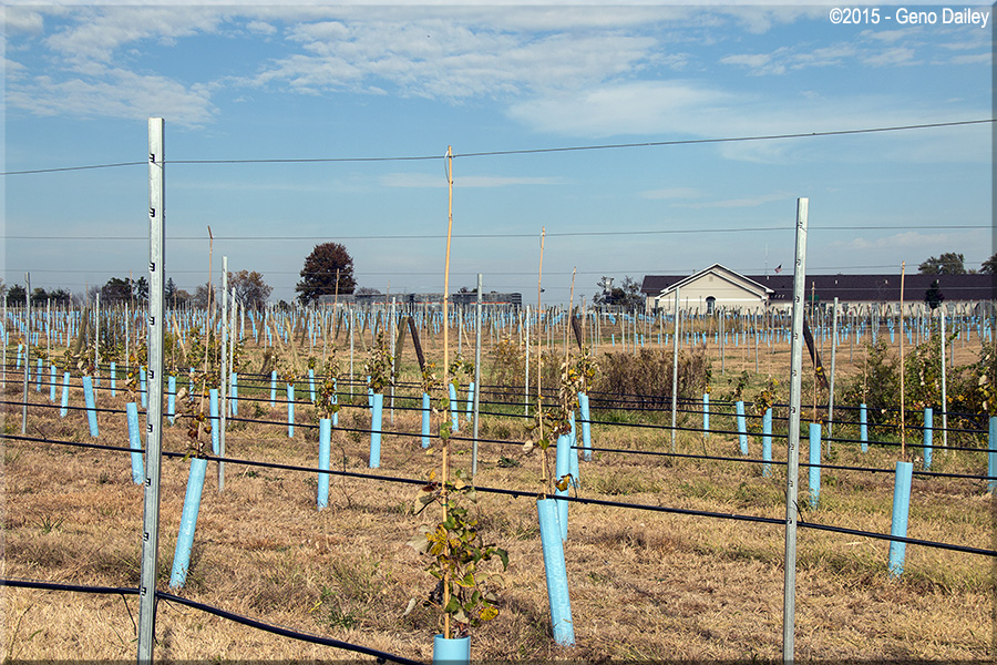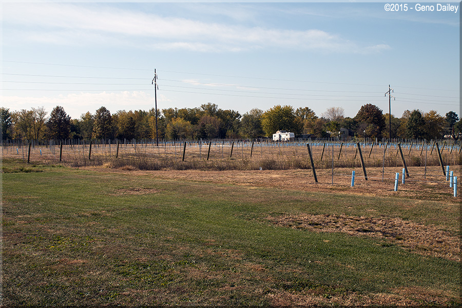 | On 40 acres of land behind the Depot Inn & Suites sits the Silver Rails Vineyards. This vineyard is only in its infancy now but there are plans in the works eventually to have a wine tasting room and a venue for weddings/events in the vineyard. The grape varieties that are planted here include red grapes such as Crimson Cabernet, Norton (The Official Missouri State Grape), Teroldego and Zinthiana. White grapes planted here include Aphrodite, Cabernet Dore, Chardonel, and Valvin Muscat. The grape plants selected for these vineyards are better suited to handle the colder Missouri winter months and in some cases are crosses between two grapes. A few examples of this would be as follows: The Crimson Cabernet is a cross between the Norton and Cabernet Sauvignon and is similar to a Cabernet or Merlot. The Cabernet Dore is also a cross between the Cabernet Sauvignon and Norton and is similar to a Sauvignon Blanc. The Zinthiana is a cross between the Norton and Zinfandel. Also, the Teroldeog is a Vinifera Grape from Northern Italy which has a climate that is similar to that of Missouri so it should grow well in this part of the country. Special thanks goes to Steve Grande for the information on the varieties of grapes that will be grown here! I took a few photos of the beginning of what will someday be some world class vineyards that provide grapes for some of the best wine in Silver Rails Country! I hope someday to have a nice glass of vino from here on a future trip! |